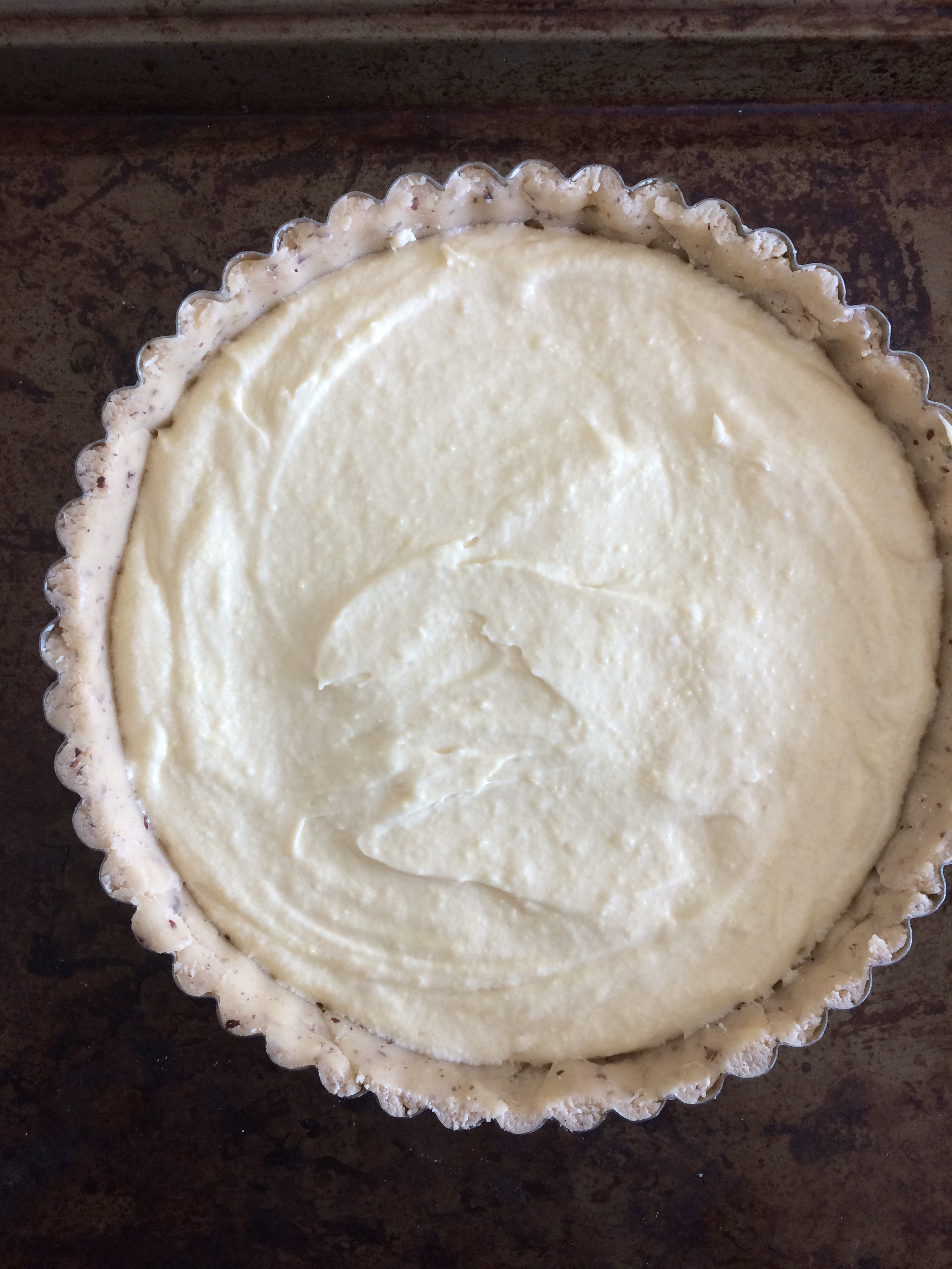Remove tart shell from fridge and prick the surface with a fork all over, about 1 inch apart. Spread filling evenly all over shell, it should come 3/4 of the way up the shell.