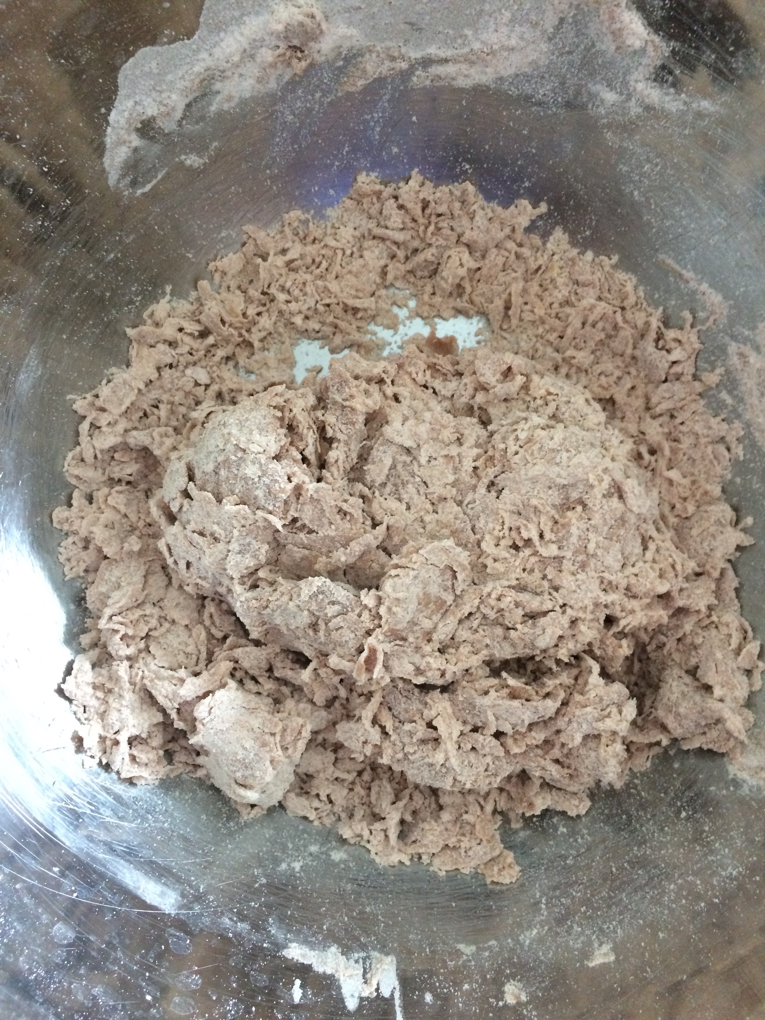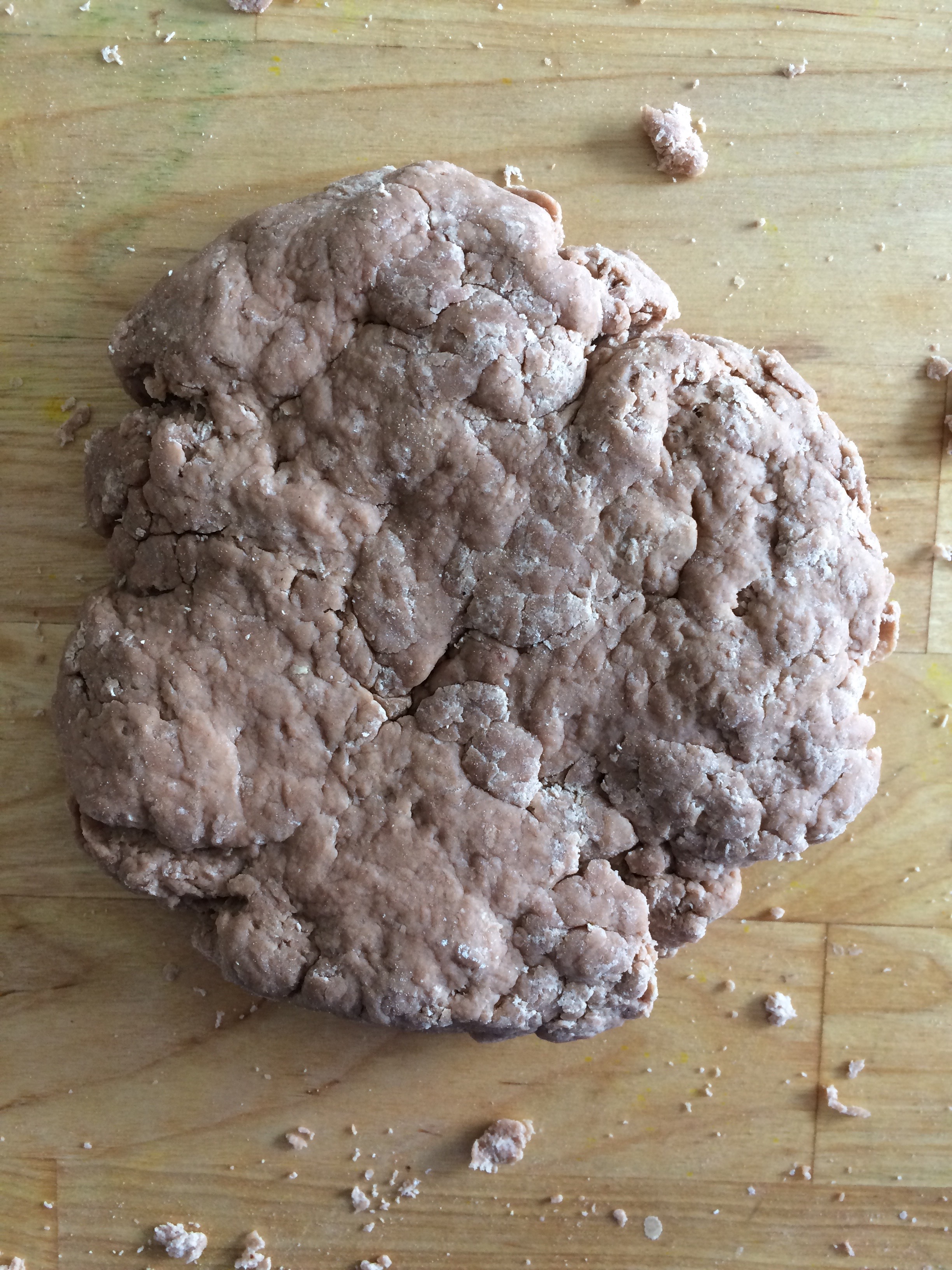 Knead dough on a flat surface for 3-4 minutes until it is nearly smooth. Flatten into a disk and wrap in plastic and refrigerate for an hour.