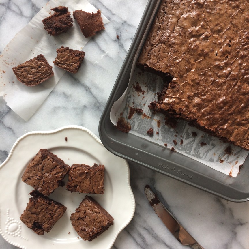 If you want to put a little twist on these, I would sprinkle the top with a bit of flaked sea salt halfway through baking. These brownies are super rich and salt would definitely cut the richness in the best way.