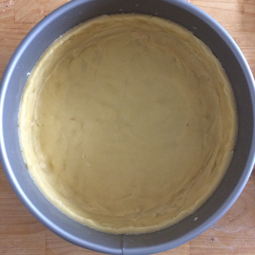 Butter a 9 inch springform pan and press the dough into the bottom of the pan and 1-2 inches up the side. Ensure the dough is evenly spread, using the bottom of a cup to smooth if needed. Place in freezer for 30 minutes.