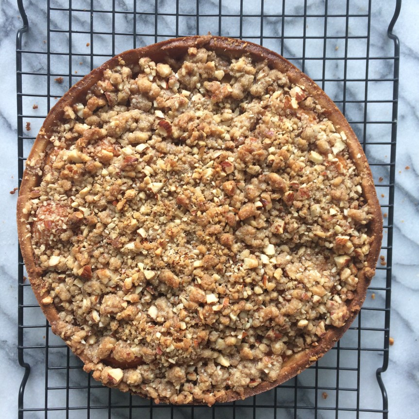Bake at 375F for 40-50 minutes until crumble is browned (it only took me 40 minutes). Allow to cool a few minutes and run a knife around the edge of the tart and let cool for 30 minutes before removing from springform pan.